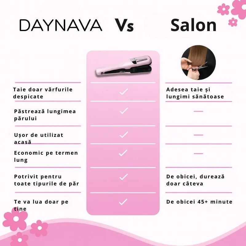 Daynava Split Ends Trimmer vizează doar vârfurile deteriorate, lăsând părul sănătos, des și irezistibil de neted.